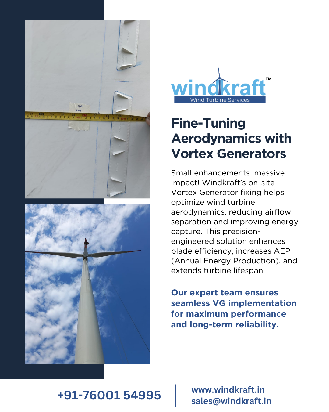 Windkraft’s precision-based Vortex Generator implementation is engineered to squeeze every bit of power from every gust. Partner with us to amplify your turbine’s efficiency—where science meets strategy.